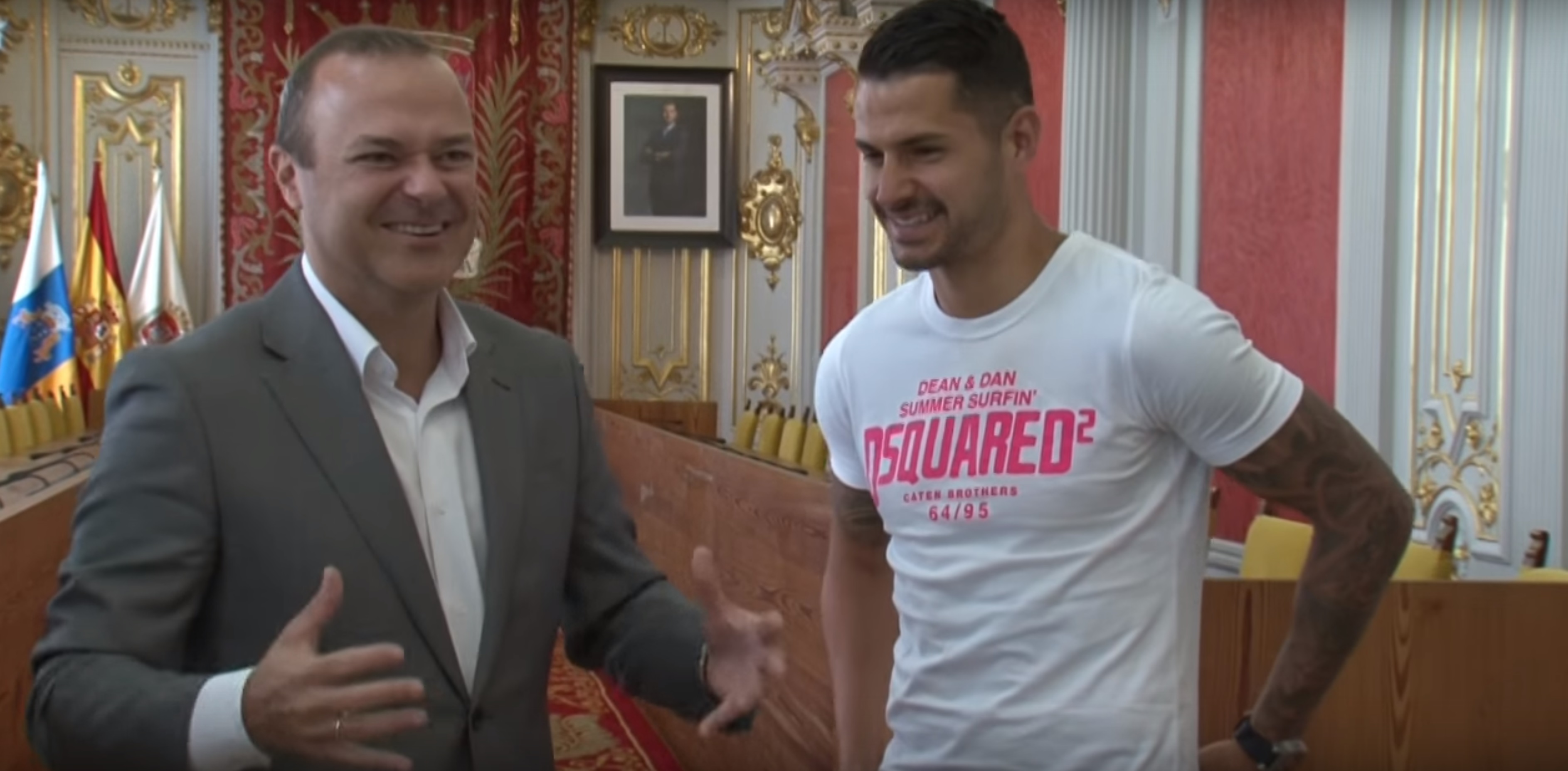 El grancanario reciente campeón de Europa League con el Sevilla FC fue recibido por el Alcalde de Las Palmas de Gran Canaria, Augusto Hidalgo, y posteriormente habló para los medios, donde se volvió a deshacer en elogios hacia el equipo de su tierra.