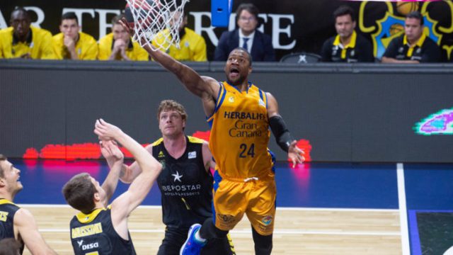 Era imposible que el encuentro se decidiera de otra manera que no fuera en los últimos segundos y con incertidumbre. Luchaba de manera serena y entregada el Herbalife Gran Canaria en busca de la primera victoria del curso a domicilio en Liga Endesa. El choque transcurría con varias igualadas. Bassas clavaba un triple que encendía a la parroquia lagunera pero respondía Wiley en el tiro libre.