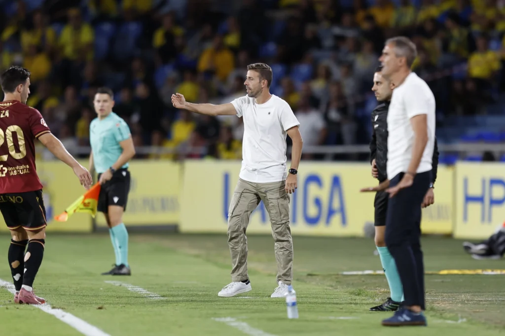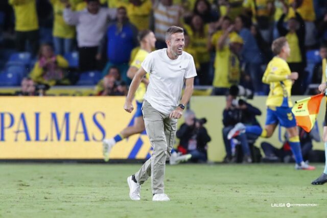Dentro del partido, si hay un nombre propio es el de Kirian Rodríguez: «Emocionado como no puede ser de otra manera porque los que tenemos la suerte y la fortuna de compartir el día a día con Kirian sabemos la ilusión que le hacía. Verlo dentro del terreno de juego y verlo bailar con el balón es un lujo y me siento un privilegiado de poder entrenar a Kirian«.