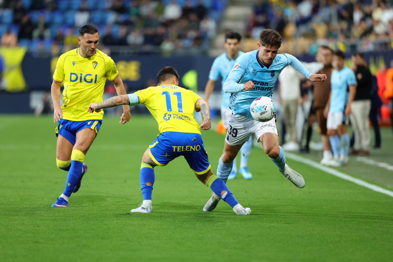 Cerca de la hora de partido contra el Cádiz, las alarmas se encendieron en la Unión Deportiva Las Palmas. En un saque de esquina sacado en corto, Estanis Pedrola intentó centrar y su golpeo acabó con el esférico golpeando al rival y con el de Cambrils pidiendo el cambio y quejándose de un dolor en la parte posterior de su muslo izquierdo.